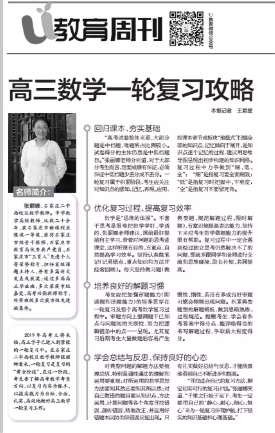 《燕赵都市报》|石家庄二中西校区张丽娜老师谈高三数学一轮复习策略