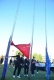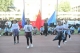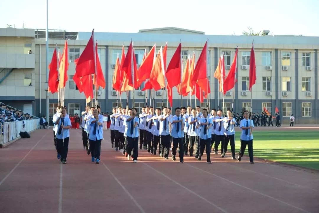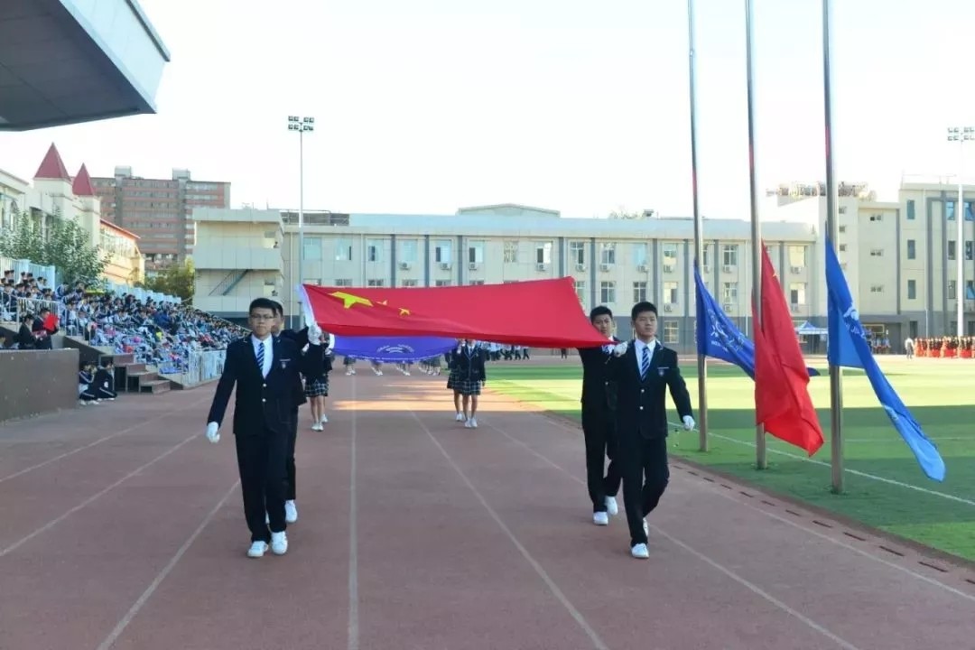 踏着青春的步伐,伴着激昂的旋律,入场仪式正式开始。国旗校旗方阵、花束方阵、旗林方阵、各班班级方阵依次走过主席台。他们朝气蓬勃、意气风发;他们的口号热情洋溢、铿锵有力,充满自信。随风飘扬的红旗也正象征着我校学子的激情与朝气,代表着拼搏进取、勇往直前的弘毅精神。随后,进行了升国旗、校旗活动。