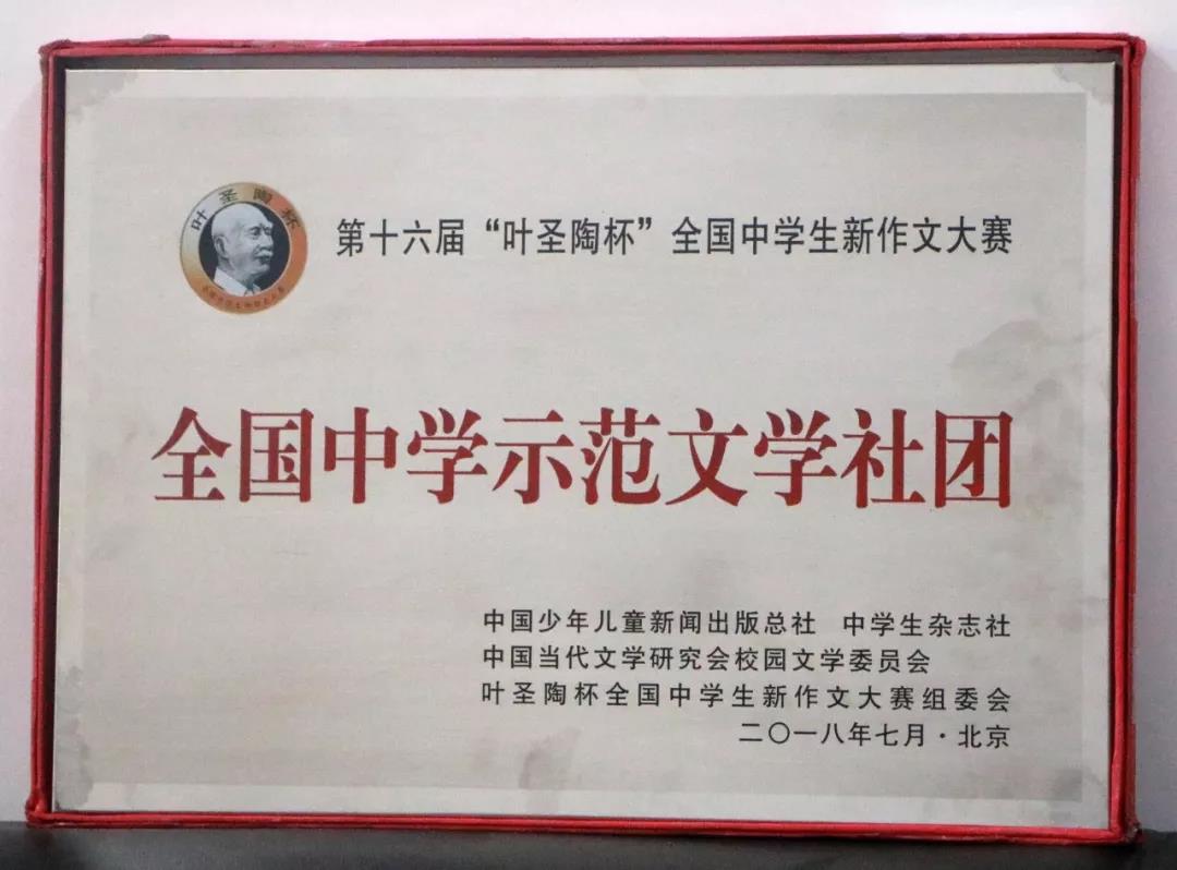 我校在第十六届叶圣陶杯作文大赛中获得佳绩并被评为“全国中学示范文学社团”