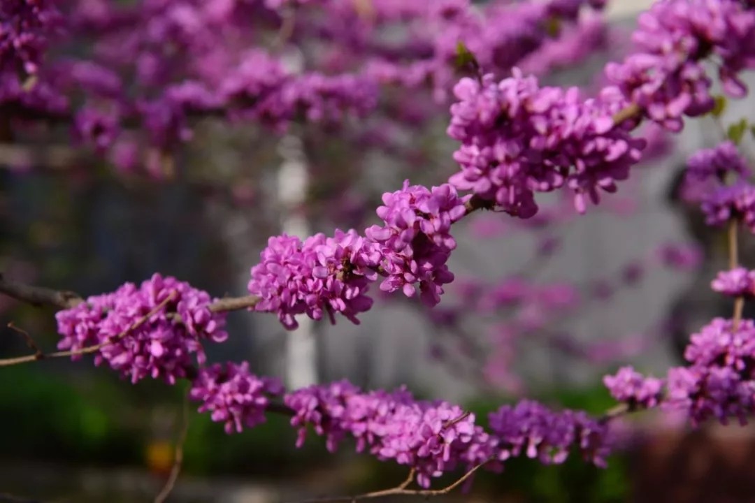 紫荆花团锦簇,长满了枝干,比树叶更早向春天报到。