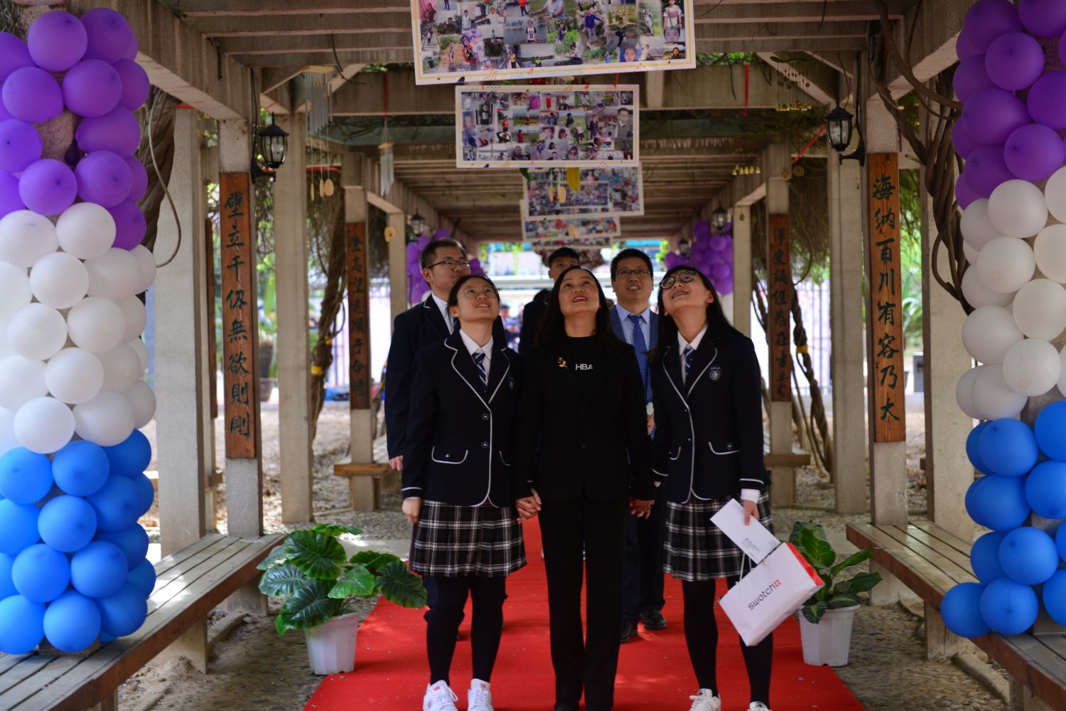 学校的紫藤花正在盛放。紫色的瀑布在流动着。41.8米长的藤廊,寓意着“试一把”,也见证了2019年4月18日这个十八岁成人的日子。盛开的花映衬着盘虬卧龙般的枝干。学生们就像那美艳花儿,而父母就如同那枝干。藤廊里挂上了记载同学们成长的照片集,记录了十八年的成长历程。金色的风铃在四月的春风中响着,唤醒了我们美好的记忆。