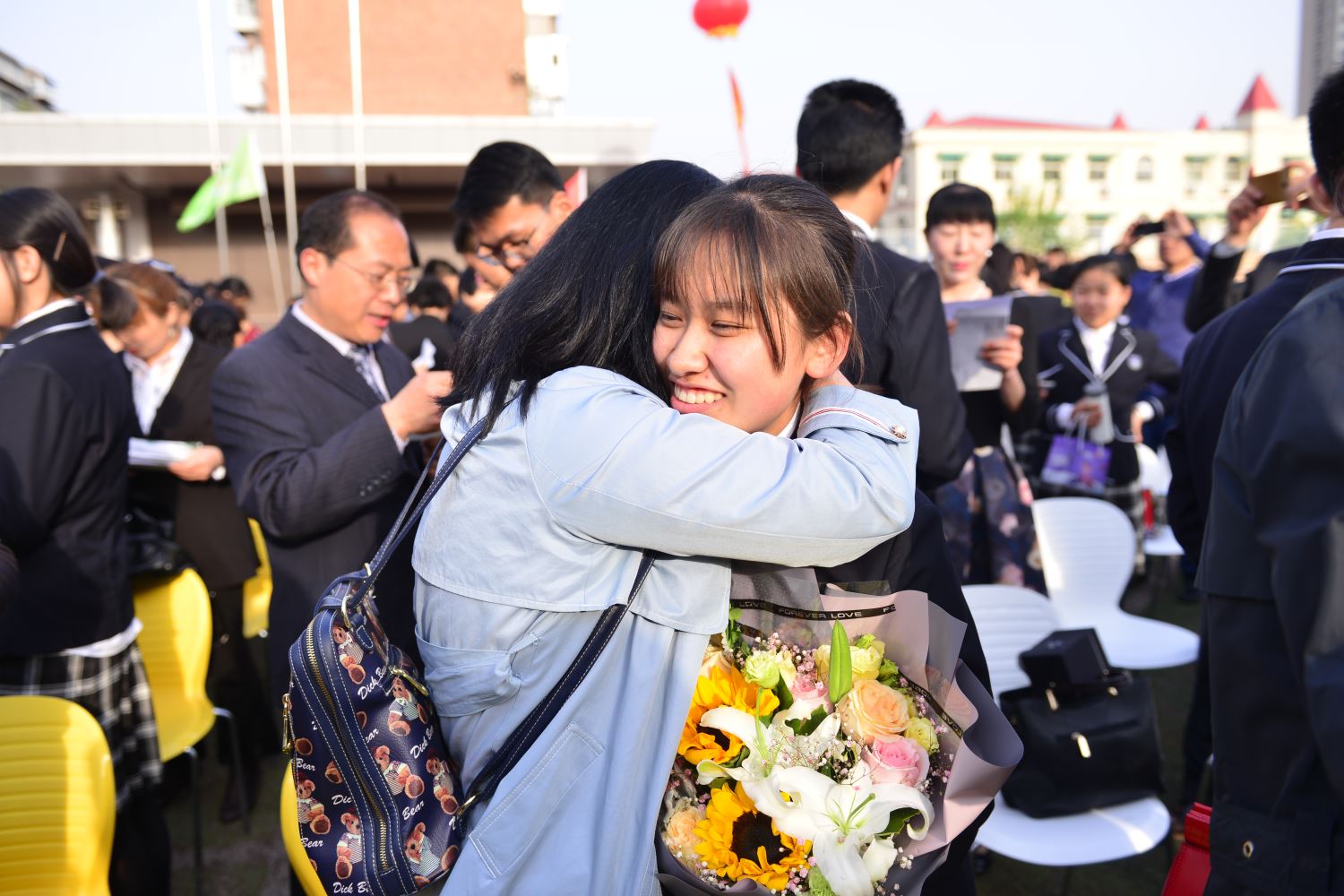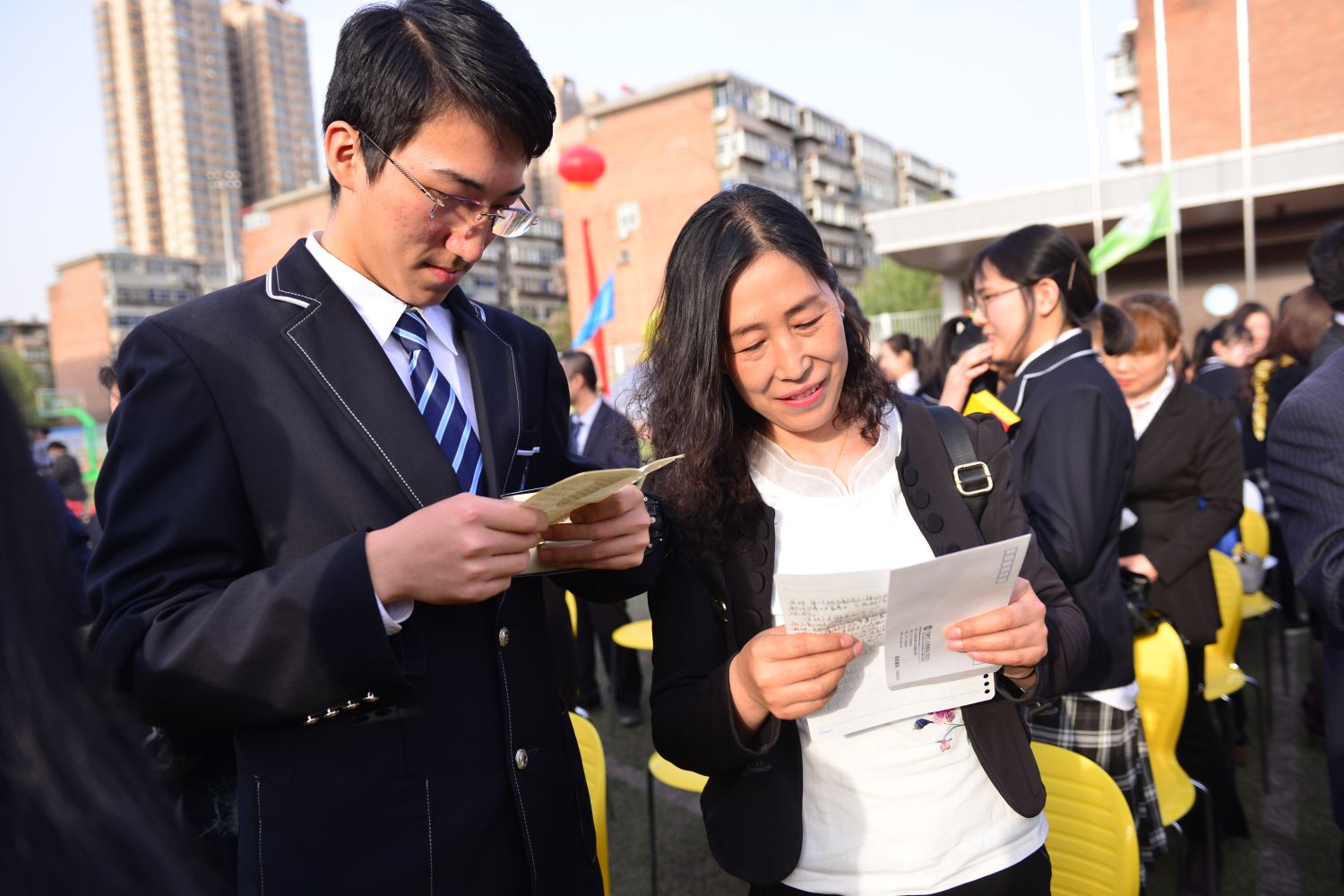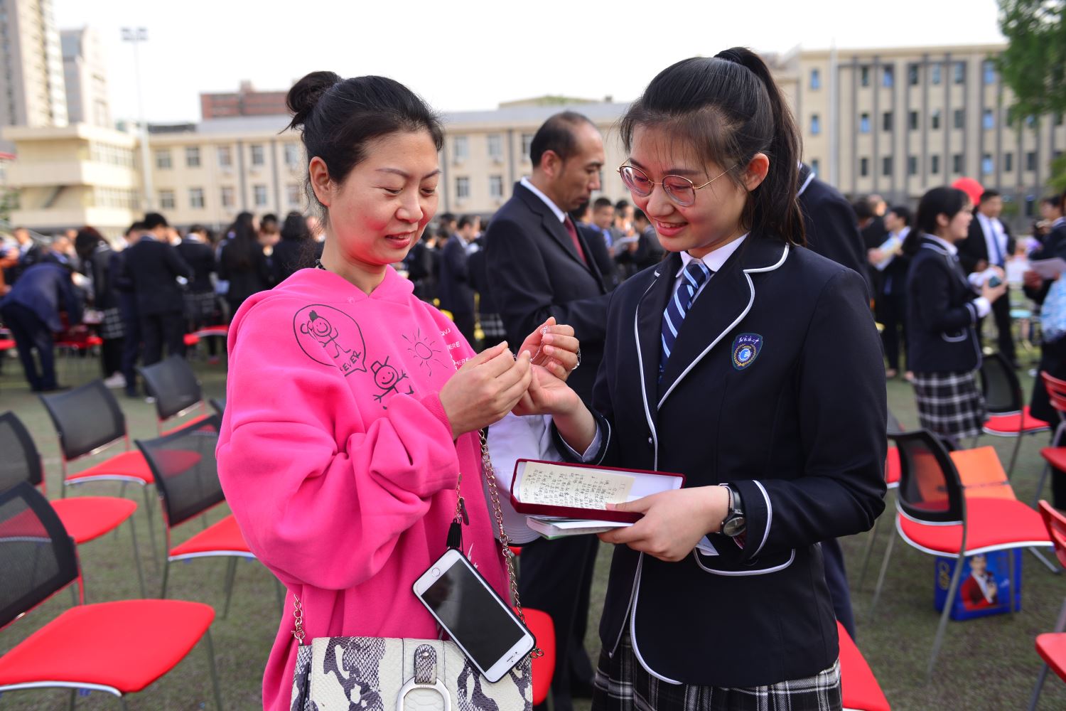 在这十八年的旅途中,我们的成长都离不开父母的呵护与包容。家长代表陈虹女士发言,表达了对孩子成长的期盼和鼓励。随后,父母拿出精心准备的成人礼物,每位同学也拿出了写下的家书。家长们上前赠送成人礼物,并与孩子一起阅读家书,一起感受着亲情的温馨和感动。