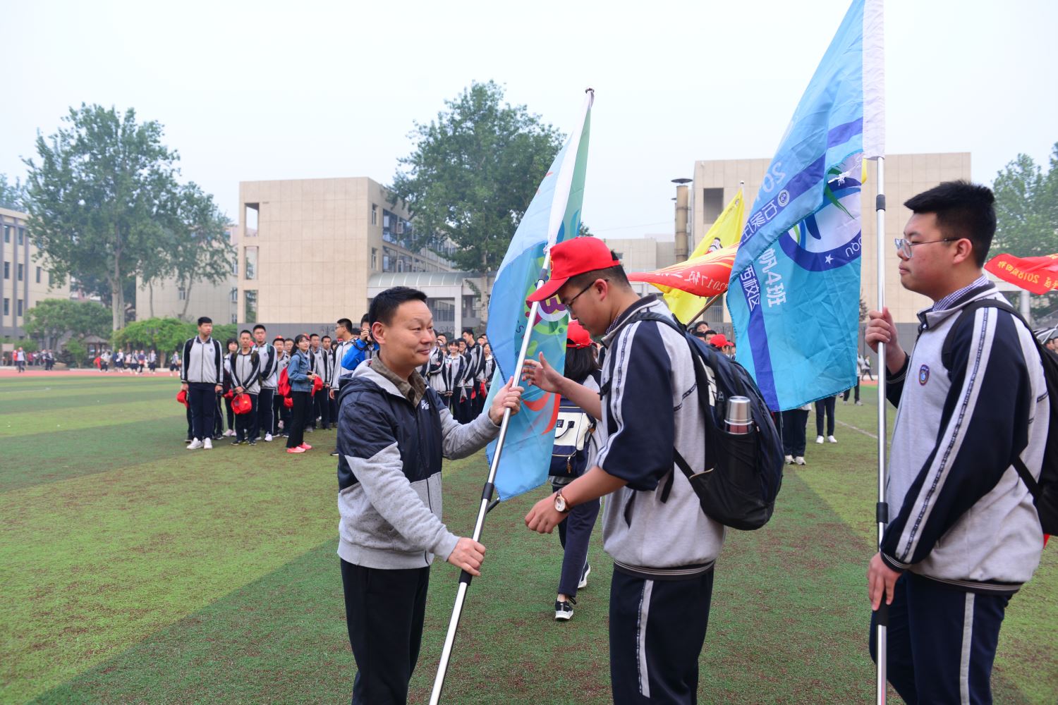 吴校长向各班授旗