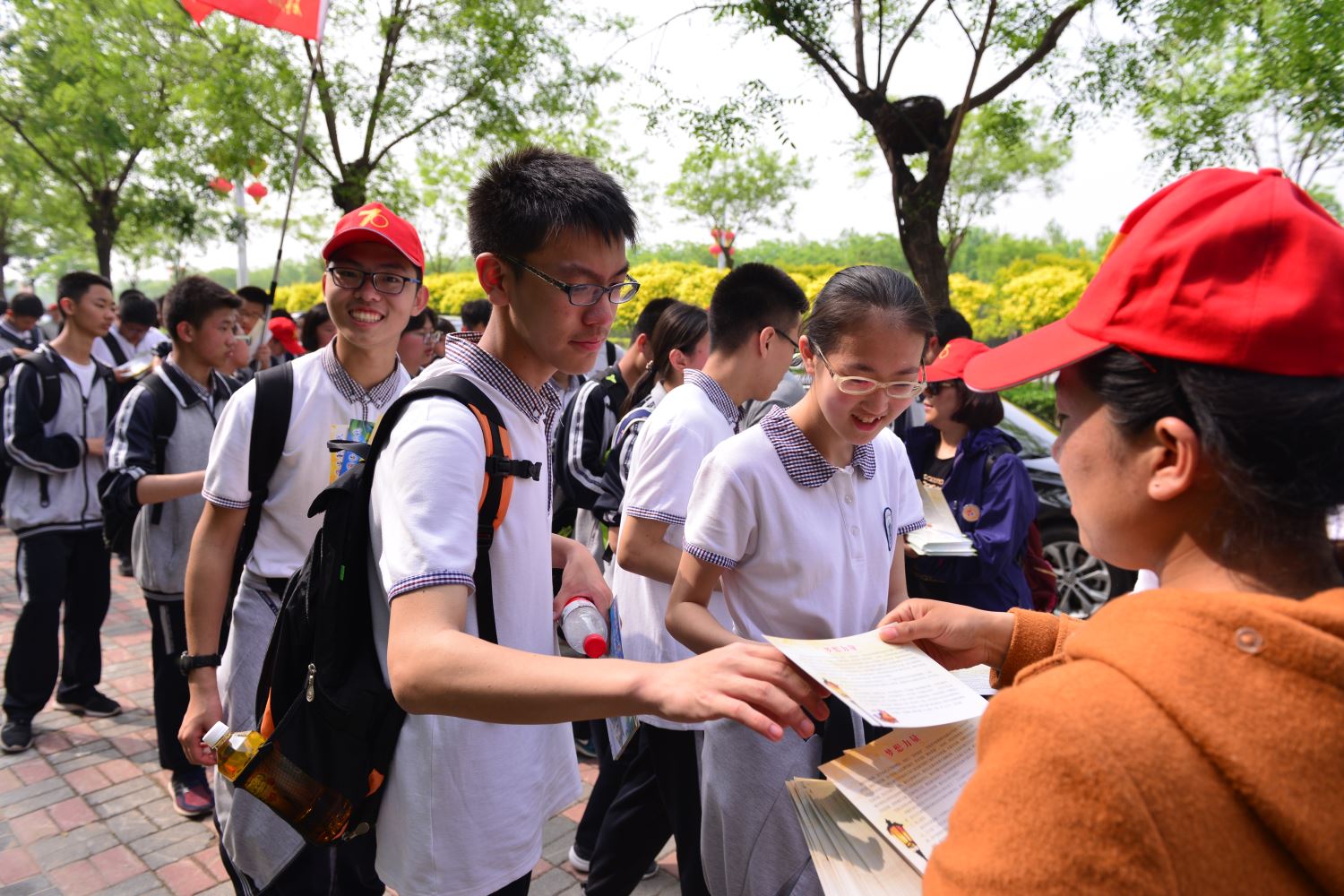 春光旖旎,阳光明媚。4月29日,石家庄二中西校区开展了研学旅行之远足活动。恰逢今年是新中国成立的70周年,即将迎来五四运动的一百周年,因此本次远足围绕新中国七十年光辉历程和五四精神传承,将主题定为:“壮丽七十载 阔步新时代”。