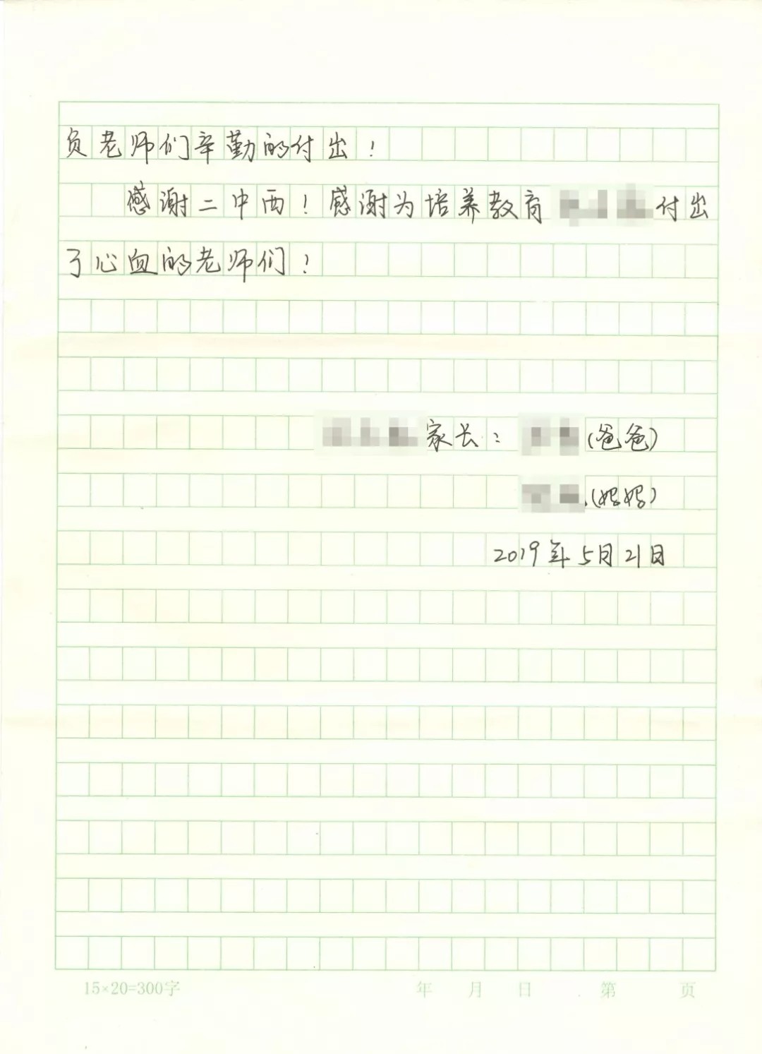 家长致二中西亲笔信|他被爱包围着,也将会用爱报答世界