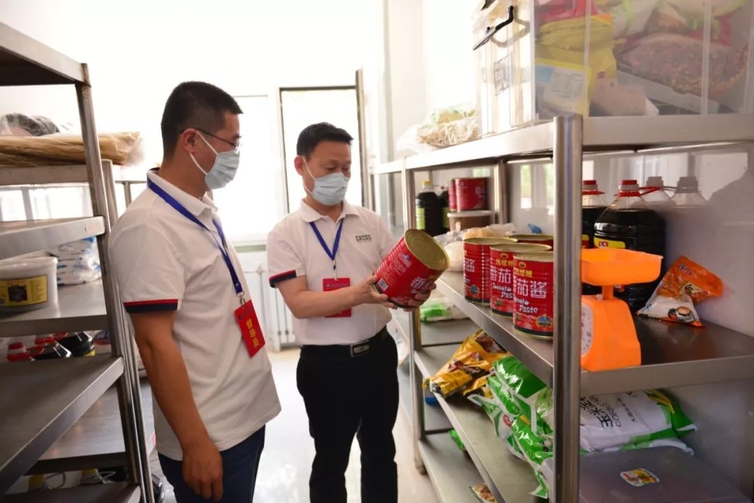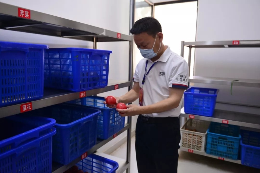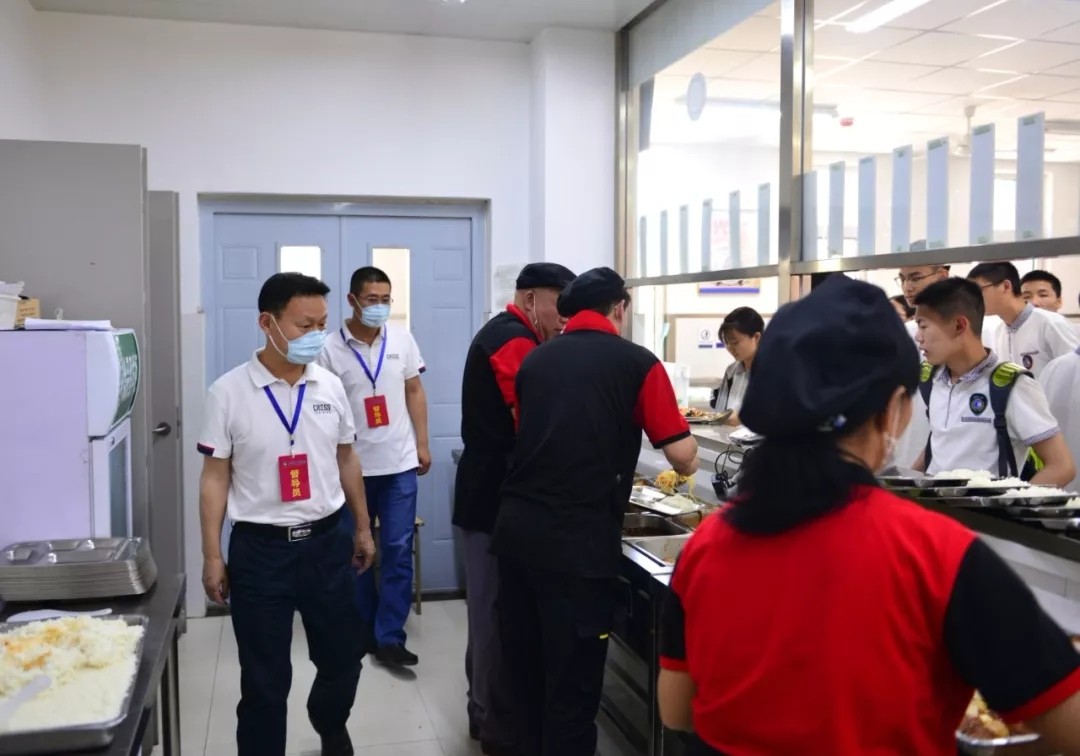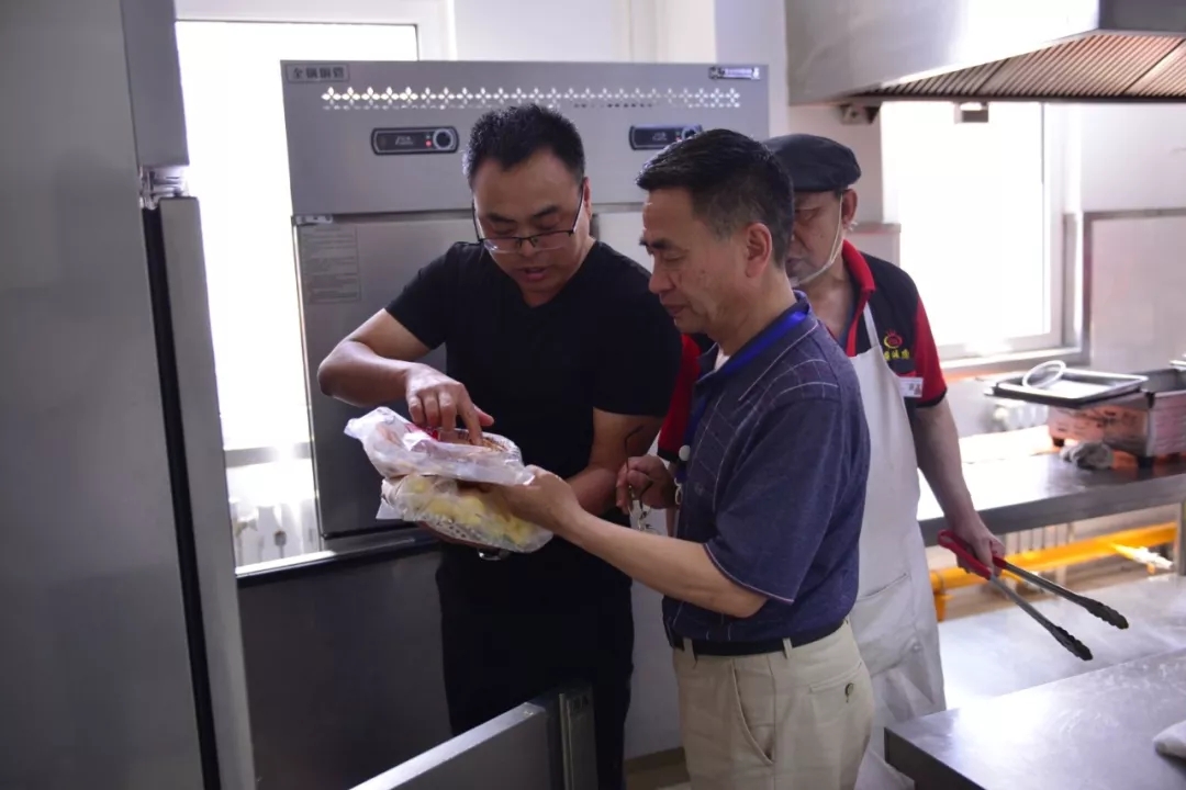 每次就餐前,我校值班领导都会提前进入食堂,检查食材是否新鲜,检查厨房是否卫生、品尝饭菜是否美味可口。陪餐时和学生坐在一起,边吃边聊,及时主动了解学生生活、学习的情况。
