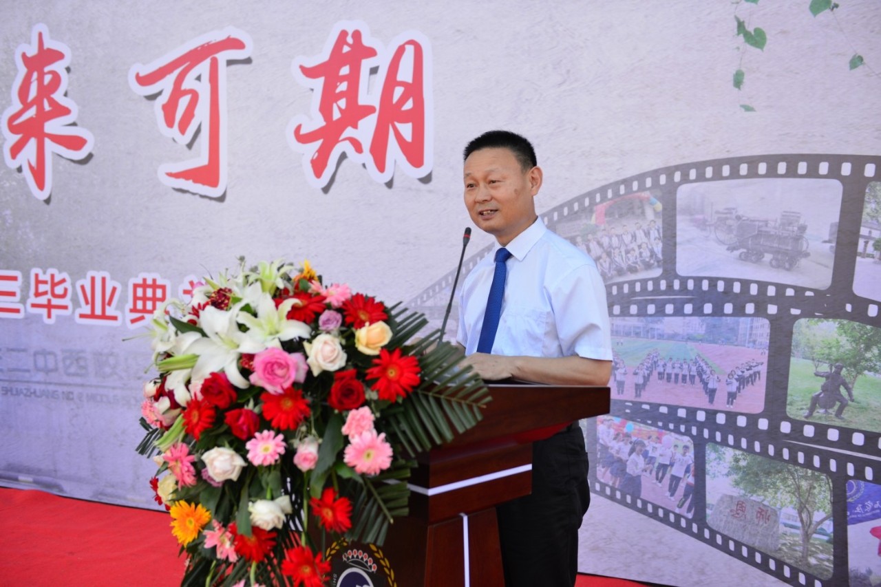 在西校区三年,同学们用奋斗为自己的青春上了两遍底色。第一遍底色是校园本色。红是中国色;蓝是二中色;绿是我校前身铁路一中崇尚的颜色。同学们,务请牢记,红绿蓝是二西学子固有的本色。在西校区,把本色凝聚得色泽饱满、纯正艳丽。任时光流逝、岁月变迁,你抹不掉这永恒的的底色——中国石家庄二中西校区。第二遍底色是青春亮色。红色,血液和心脏的颜色,代表了热情和赤诚,寓意品德高尚。绿色,春天和生命的颜色,代表了生机和活力,寓意体魄强健。蓝色,大海和天空的颜色,代表了浩瀚和深邃,寓意学识渊博。历经三年西校区的浸育,同学们握牢了饱蘸红绿蓝三色颜料的画笔,有能力把未来的人生挥洒得五颜六色、丰富多彩,可以如黄色般辉煌,如橙色般时尚,如紫色般优雅,如靛色般舒畅。