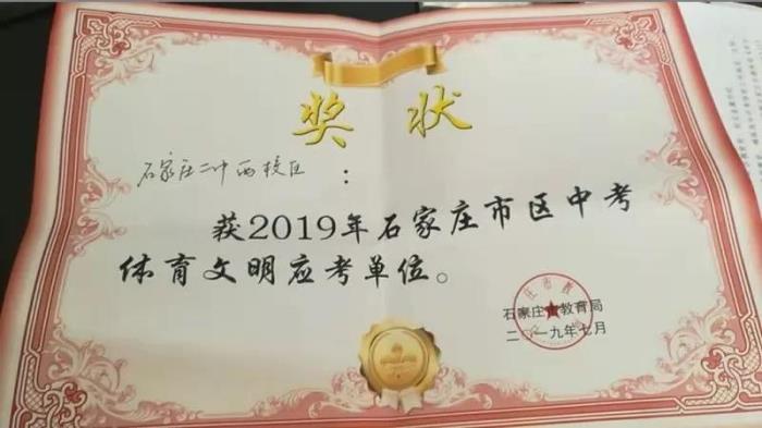 通过努力,我校体育中考取得了辉煌业绩,增加了学生体质,也树立了他们的自信心。近日,我校被评为市中考体育文明应考单位。