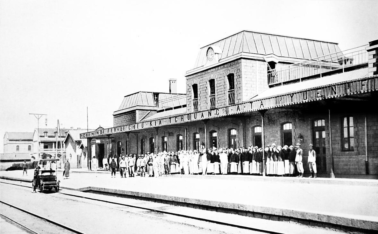 石家庄车站1907年外景。1907年正太铁路正式通车,照片中的石家庄站是正太铁路的起点,车站外立面上用法语写着“正太铁路”“石家庄”“太原府”
