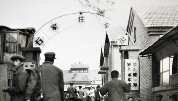 八十年代以前的(第一代)石家庄火车站的进站口,位于现在的解放石家庄纪念碑东侧。右边的仓库样式的建筑就是当时的候车室
