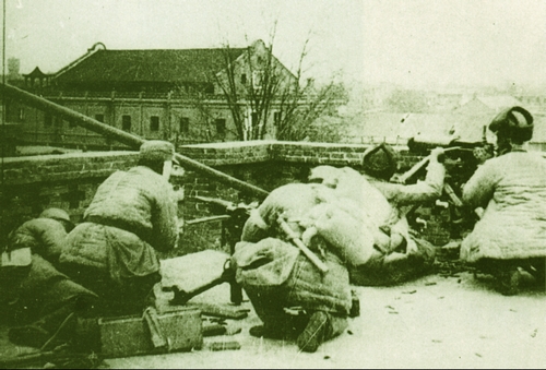 1947年11月解放石家庄战役,人民解放军通过石家庄火车站的大石桥