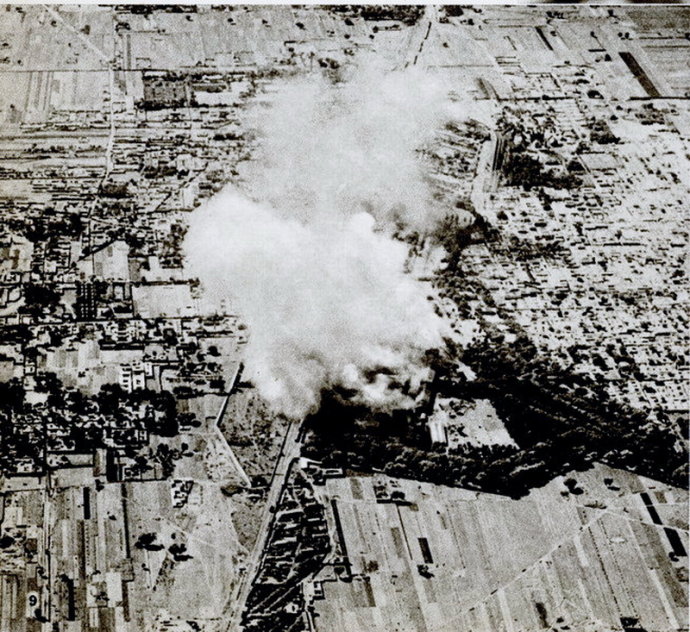 日本侵略军拍摄的轰炸石家庄火车站的照片