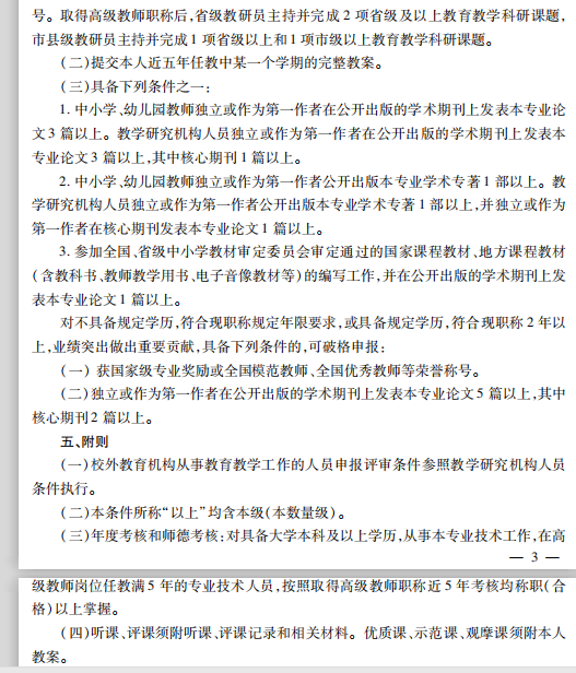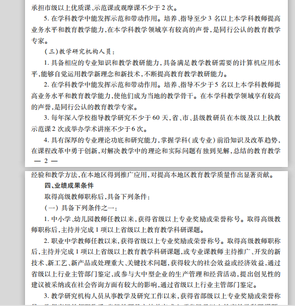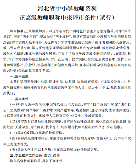 河北省中小学教师系列正高级教师任职资格申报评审条件