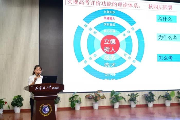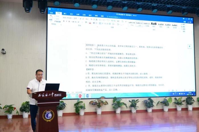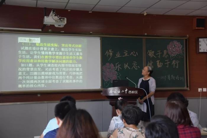 8月28日、29日,石家庄二中西校区进行开学前教师培训。本次暑期培训的特点是,本校教师唱主角,C位全部是一线教师,共有67人次老师登台进行中高考试题研究、中高考备考策略、学历案对核心素养的培养、思维导图的应用四大版块的汇报交流,以此来启迪老师们对专业进行的深入思考和系统研究,使培训内容与日常教学联系更加紧密,增强了培训的实操性,也展示了一线教师的智慧与才情。精彩的教学案例、独特的观念视角、迥异的汇报风格、精彩务实的讲座引发了大家的强烈共鸣,老师们时而静听深思,时而奋笔疾书,时而会新微笑,沉浸在学习的乐趣中。