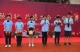 六位老师上台接受学生的献花并合影留念