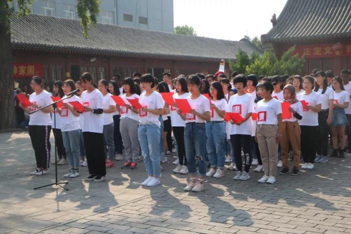 活动现场,来自省内外的儒门同道、传统文化爱好者、孔子后裔及省会部分大中小学的学生500余人参加了典礼。各个学校的学生诵读了儒家经典篇章。我校学生代表诵读了《大学》。