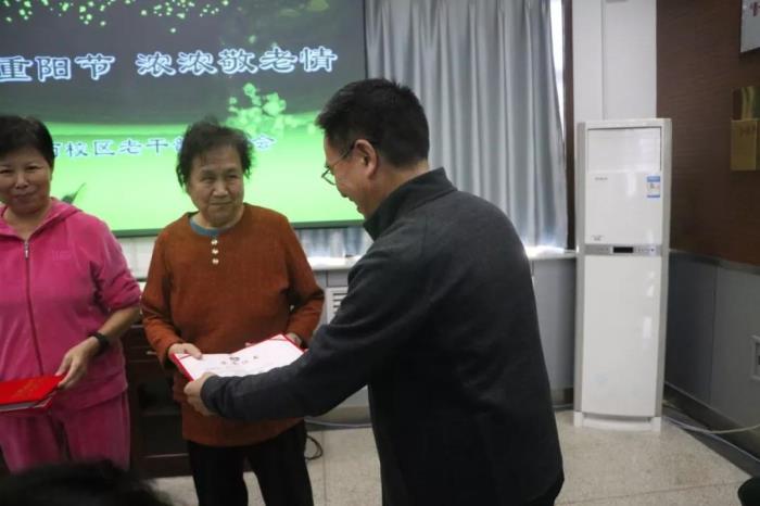会上,吴进校校长向尊敬的老前辈们表达了最热烈的节日祝贺, 感谢他们的关心和支持,并介绍了学校近几年来的发展情况,以及所取得的显著成绩。离退休同志畅谈感受,感怀岁月流逝,追忆往昔峥嵘岁月,感叹国家的繁荣昌盛。随后,大家观看了老同志精湛的书画等艺术作品,学校领导向获奖同志颁发纪念奖品。