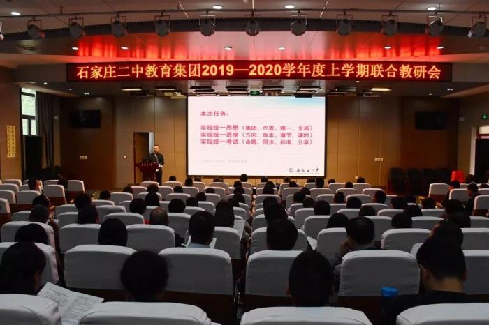 10月9日,石家庄二中教育集团2019-2020学年度联合教研会在本部成功举办。来自本部、南校区、西校区、润德校区、雄安校区的高一、高二年级,九个学科近百位教研室主任、备课组长济济一堂。西校区樊茹副校长、常乐主任带队参加了活动。活动由石家庄二中本部教务处副主任杨继光主持。