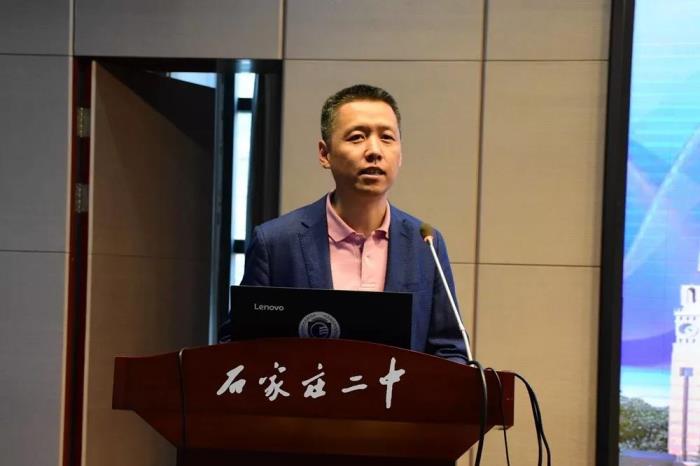 石家庄二中党委委员宋泽亮讲话,他阐述了此次大会的指导思想、主要任务以及教研内容。