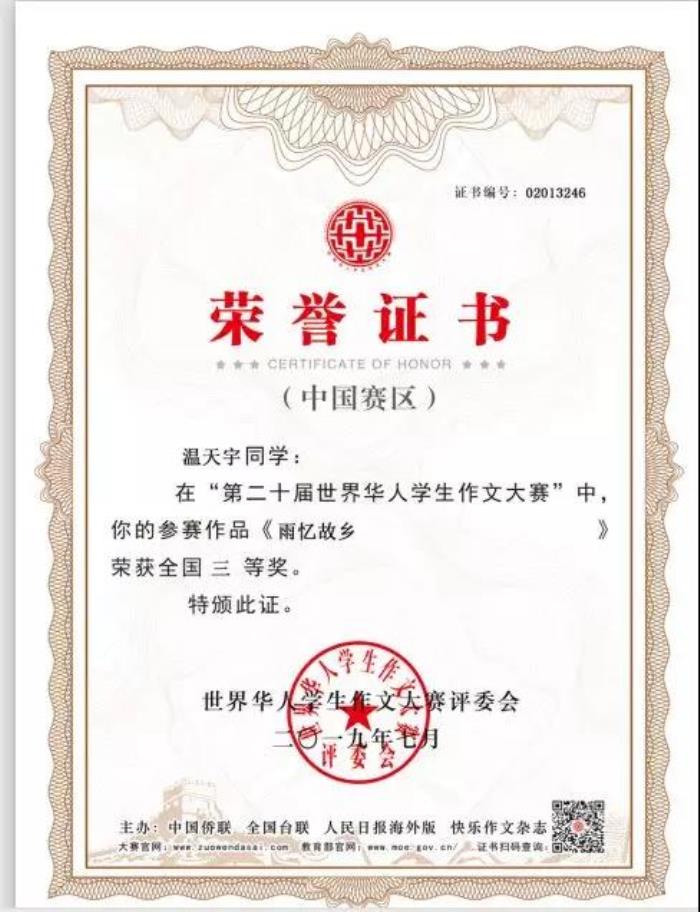 近日,由中国侨联、全国台联、人民日报海外版、《快乐作文》杂志联合主办的第二十届世界华人学生作文大赛结果揭晓。