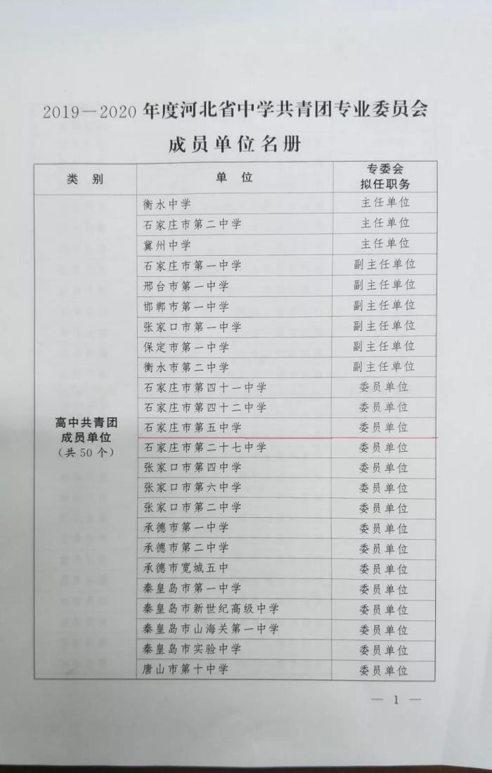 喜讯 二中西团委成功入选河北省中学共青团专业委员会成员单位