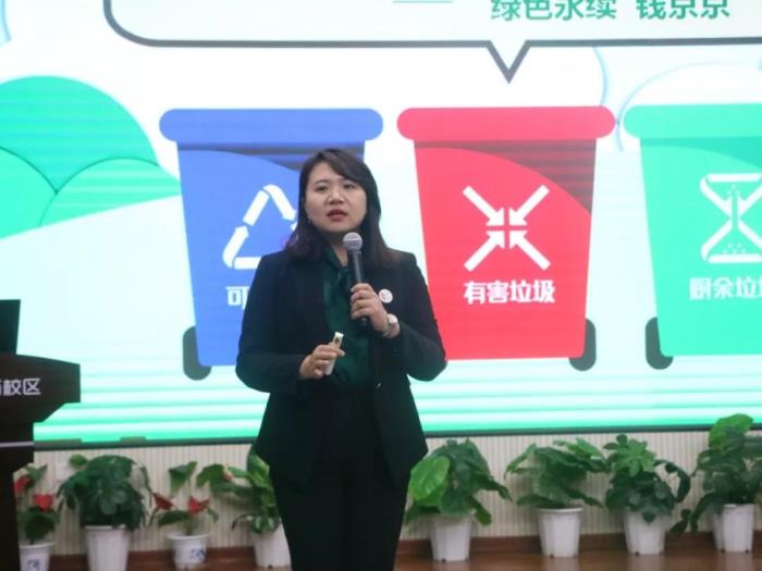 12月5日下午,学校举行了“生活垃圾分类”专题培训活动,我校学生代表和餐厅、宿管等后勤人员参加了活动。环保宣教老师钱京京结合实际生活阐述了垃圾分类的重要性,并详细讲解生活垃圾的分类方法,还就具体操作问题进行了现场演示。