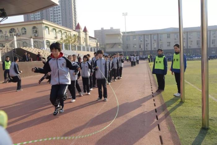 整齐划一的跑步并不是课间操的唯一选择。课间操不再是一种任务,而是成为释放个性的舞台。目前,通过丰富多样的手段引导学生参与运动的兴趣,已经成为优秀学校的共识。12月13日,石家庄二中西校区教育处组织开展了花式跳绳课间操大赛。