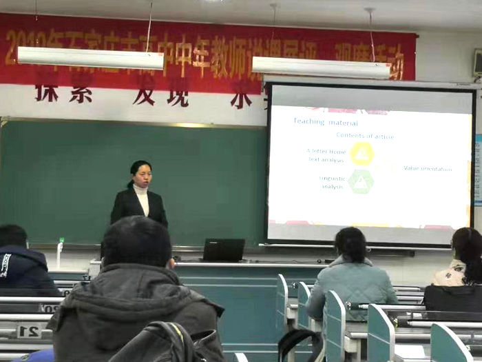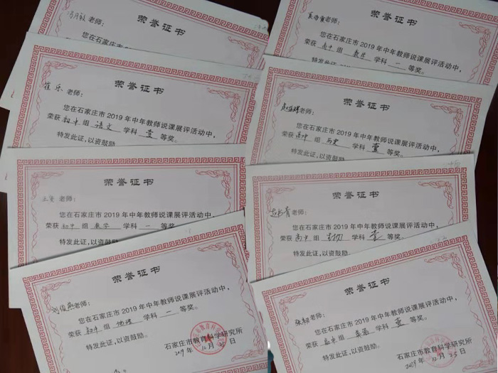 九层之台,起于累土。“说课”是教师钻研教材、探讨教法、不断提高教学水平的一种好方法,更是促进教师专业化发展的有效途径。为促进中年教师的继续成长,培养中年教师更好地把握处理教材、深入挖掘教材的能力,进一步提高课堂教学水平,达到以“说”促“教”的目的,石家庄市教科所于11月下旬到12月上旬举办了“2019年中年教师说课比赛”。比赛分初中组和高中组,我校初中王贤、冯月敏、崔乐、刘俊燕,高中赵书青、张韧、袁海霞、赵振辉共八名教师参加了角逐。