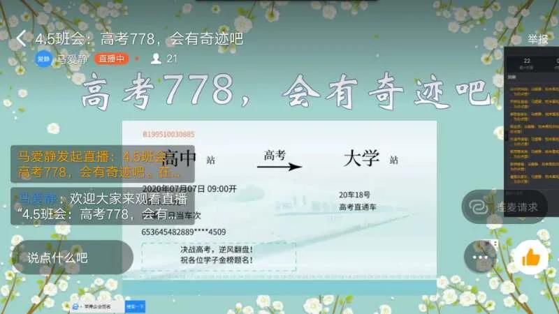 在班会上,班主任们从心态、自律、时间、健康四个角度帮助学生们正确认识和接受高考延期所带来的影响,以平和的心态面对环境的变化,同时提出了应对高考延期的一些具体措施,例如引导学生尽快调整复习计划、合理利用好高考延期所带来的一个月时间、充分夯实基础、有余力的学生制定自主复习计划等等。