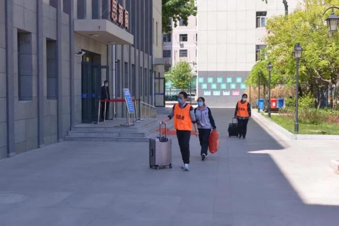 即使隔着口罩,同样能感受到同学们回归校园的兴奋。一名同学高兴地说:“见到同学和老师很高兴,学校做好了防护措施,我心里感觉很安全。”现场还有不少送学生复课的家长,他们在门口看了学校这样完善的防疫措施,还有专门帮助接运住宿行李的贴心志愿服务者,感觉到既暖心又放心。