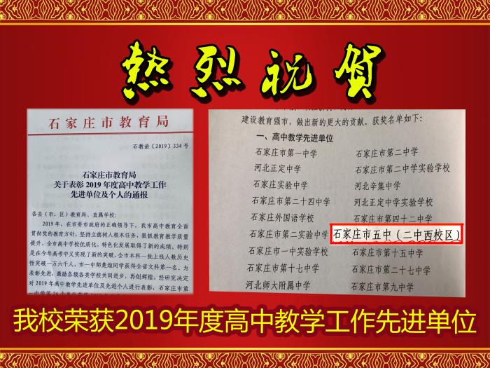 喜讯!二中西校区获得2019年“高中教学先进单位”称号!