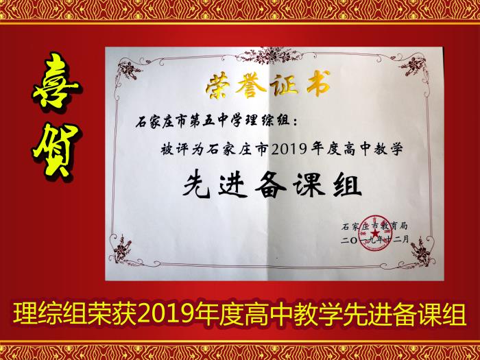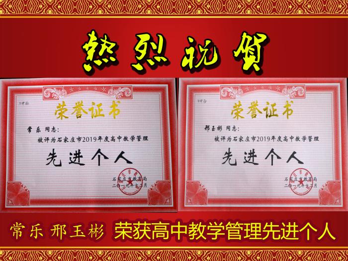 为了表彰先进,激励全市高中学校再创辉煌,近日,石家庄教育局评选出了2019年高中教学先进单位及个人。其中, 二中西校区获得“高中教学先进单位”称号,理综备课组被授予“先进备课组”称号。教务处常乐主任、年级邢玉彬主任获得高中教学(管理)先进个人称号。