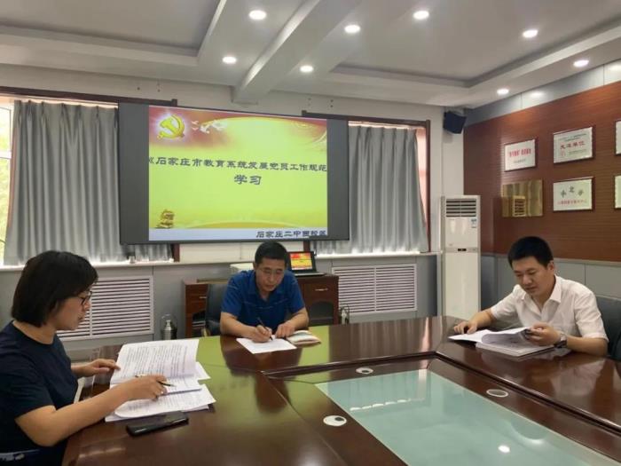 这次培训学习是在今年初我校五个支部进行了换届改选的背景下,为加强基层党支部建设工作而进行的一项指导性培训。会议由党总支组织委员张尚英副校长主持。张校长带领办公室党务工作人员、各支部组织委员认真逐条学习了《中国共产党支部工作条例》和《石家庄市教育系统发展党员工作规范》。办公室马爱静副主任和高艳莎老师对前一阶段各支部三会一课支部手册记录中出现的问题逐一对标提出解决建议。