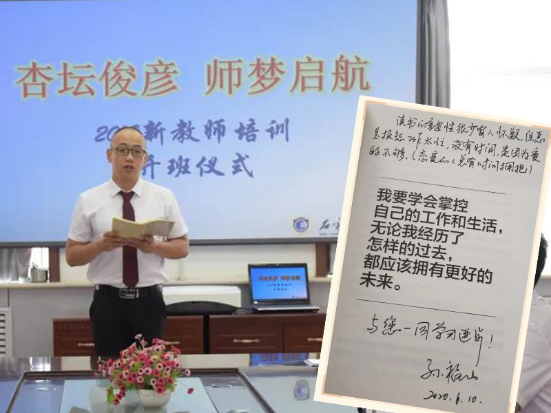 非常感谢孙校长提供给我们这么棒的平台,促进我们的成长进步,您的一席话也深深触动了我,不仅激励了我的工作热情,也带给了我深深的思考。您说“恋爱的人总有时间去拥抱”,是因为深爱。这句话对我触动非常之大,我们在工作中常常以时间不够为理由,给可以完善的工作留下瑕疵,之所以会把时间优先让给其他事情,是因为不够热爱自己的工作,干一行爱一行才能让自己快乐工作,享受工作,今后的我会给教学工作倾注更多的情感与热爱,给学生更多的关怀与耐心,将日常工作做到尽善尽美,在教育的春风里燃烧自己的青春。感谢您对我们的支持和鼓励,向您致敬!