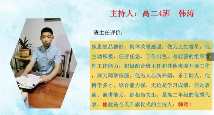 大家上午好!我是高二4班的刘歆宇, 今天我演讲的题目是:以民之法,点亮中华。