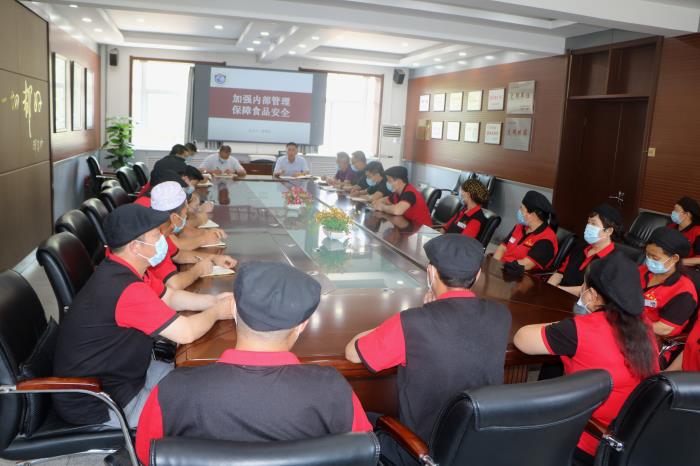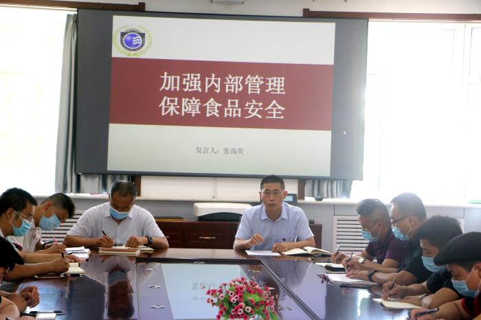 总务处副主任王志泉对食品安全管理月有关工作予以布置安排 ,决定 把6 月份确定为食品安全管理月,要求餐饮经营单位从员工健康及着装、原材料采购验收及储藏、后厨环境卫生、加工规范、食品留样等全过程加强内部管理和自查。每周,学校方面也会组织人员,不定期对食堂经营管理情况进行抽查。通过餐饮单位每日自查和学校每周的定期抽查,以查促改,切实提升管理水平,保障师生食品卫生安全。