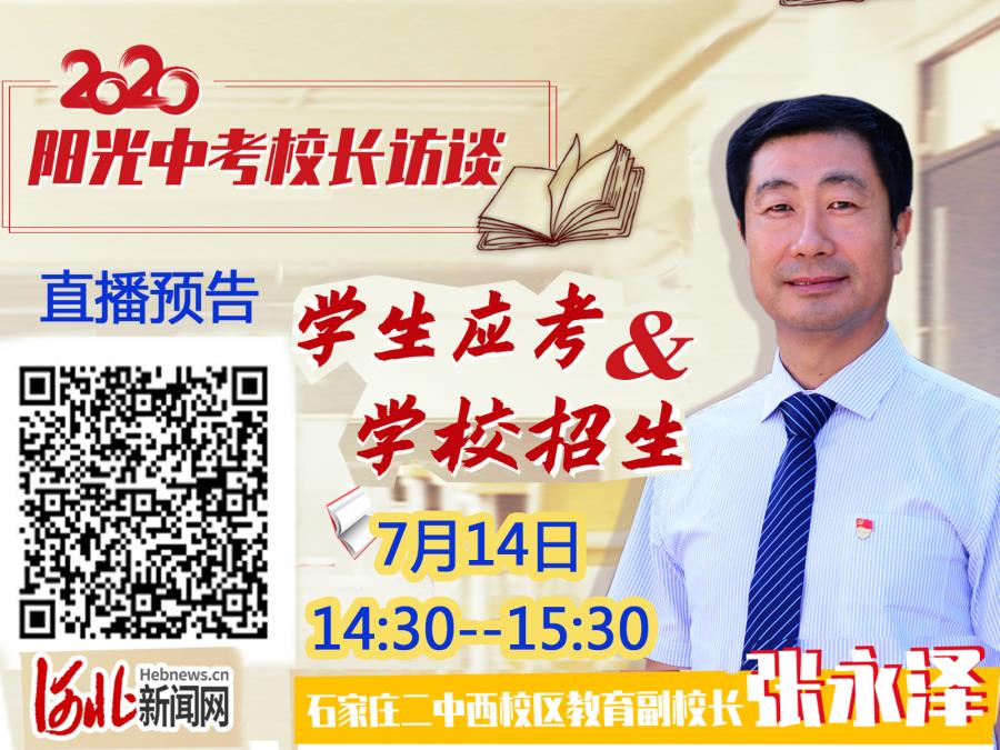 张永泽:主持人好,亲爱的广大网友,大家好,我是石家庄二中西校区的副校长张永泽,很高兴来到中考访谈栏目直播间,与大家一起交流学习提升。谢谢。