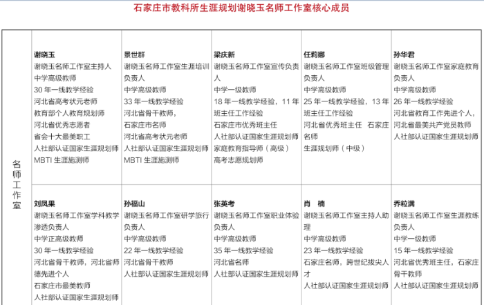 石家庄教育科学研究所生涯规划“谢晓玉名师工作室”核心成员