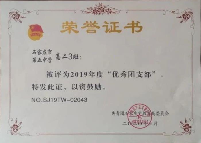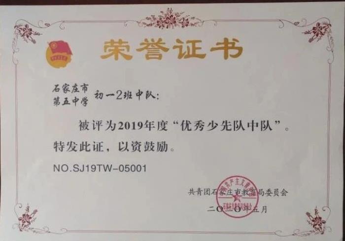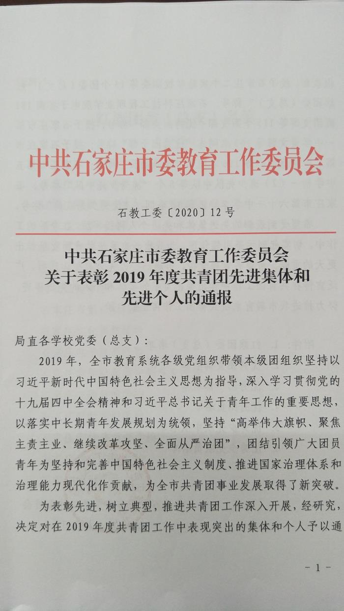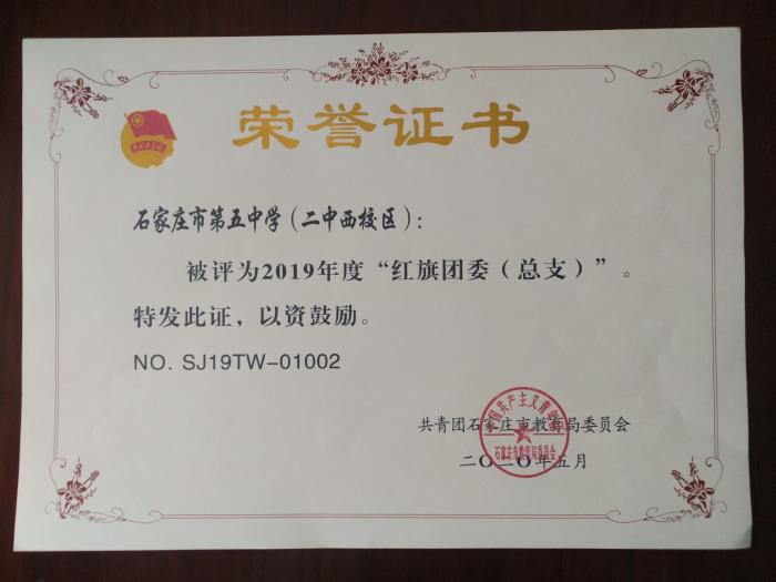 二中西校区校团委被评为2019年度石家庄市红旗团委