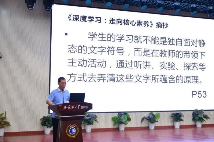 8月27日、28日,石家庄二中西校区进行开学前教师培训。各科教研组进行展示汇报,孙福山校长、王艾华老师做专题讲座,以此来启迪老师们对教学进行的深入思考和研究,并应用到日常教学中。精彩的教学案例、独特的观念视角、迥异的汇报风格、精彩务实的讲座引发了大家的强烈共鸣,老师们时而静听深思,时而奋笔疾书,时而会心微笑,沉浸在学习的乐趣中。