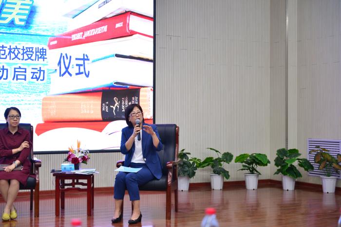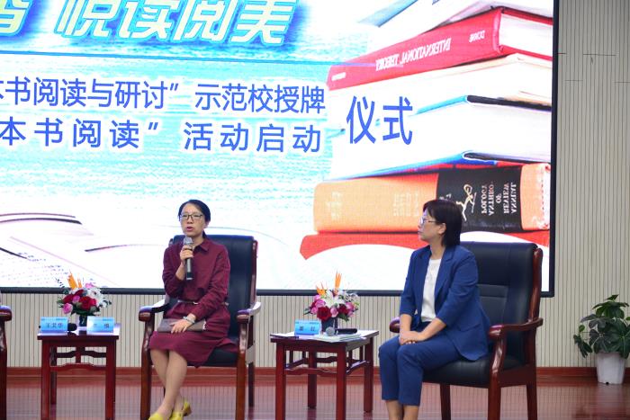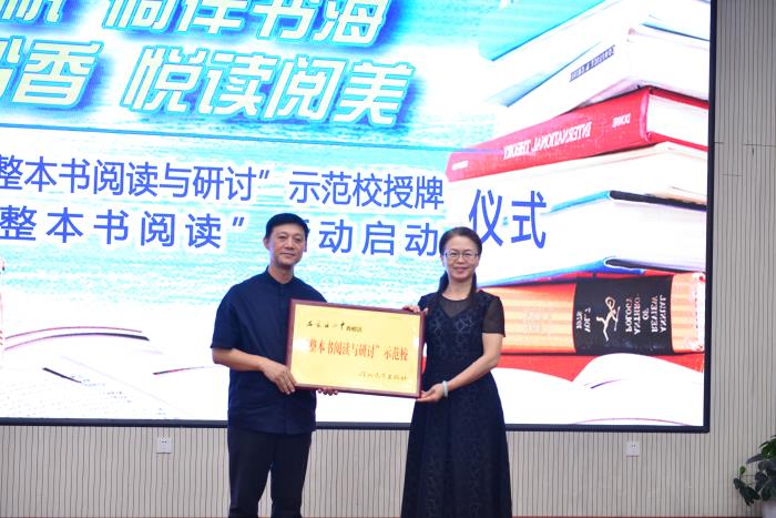 随后,雷斌副社长向我校授牌。授牌仪式结束后,石家庄市教科所语文教研员、河北教育出版社特聘专家李慎,河北教育出版社助学读物编辑室主任姜红,二中特级教师、正高级教师王艾华,就整本书阅读项目进行了研讨座谈。
