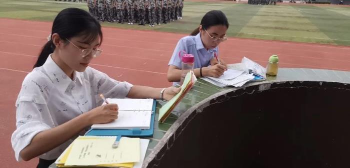 班主任老师批阅学生军训心得、自荐表