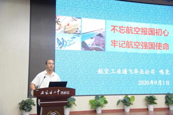 9月 1日,学校邀请航空工业通飞华北公司专家鸣尧来到我校,做了一场《不忘航空报国初心,牢记航空强国使命》为主题的国防教育讲座。他从我国的航空梦讲起,向同学们介绍了国产大飞机、战斗机、通用航空工业的发展历程,普及了国防知识,激起了同学们对航空、对国防的强烈兴趣。