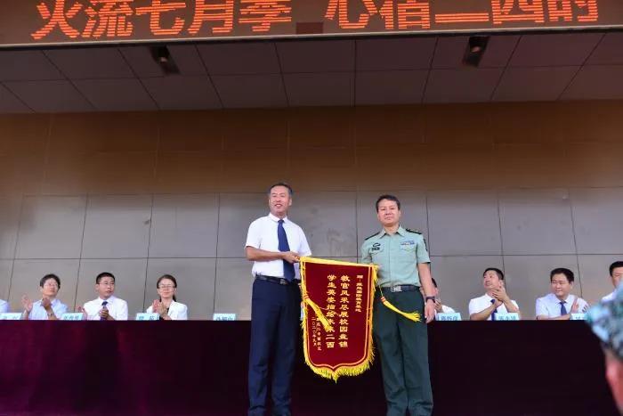 接着,振起国防教育基地白峰主任发言,赞扬了同学们在训练中的表现,并送上美好的祝福。孙福山校长向承训单位赠送锦旗,同学们用热烈的掌声表达对教官最衷心的感谢。