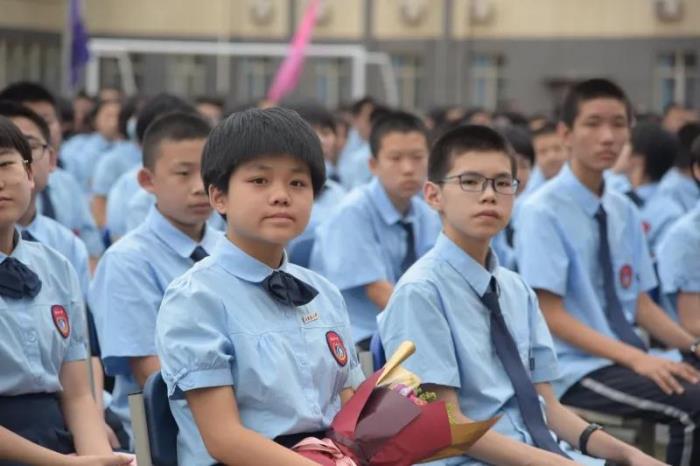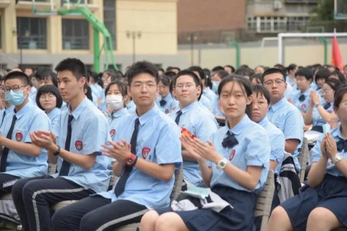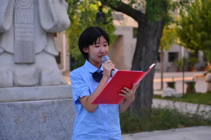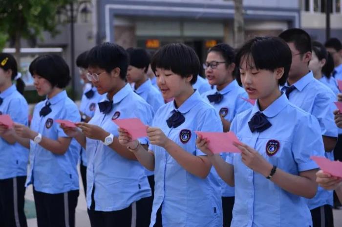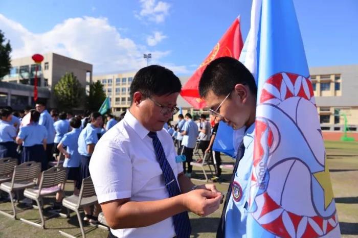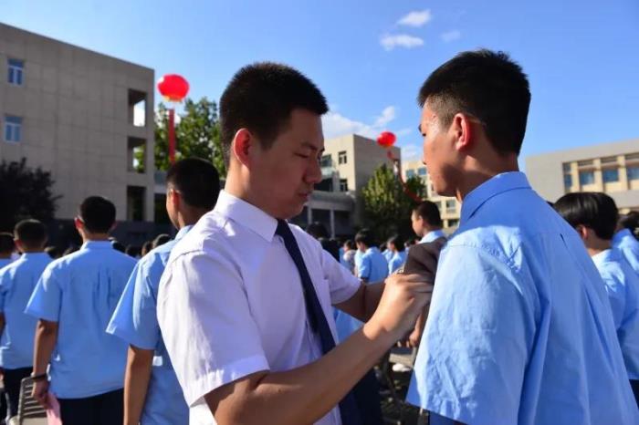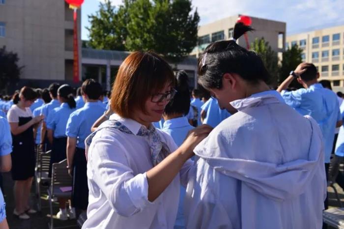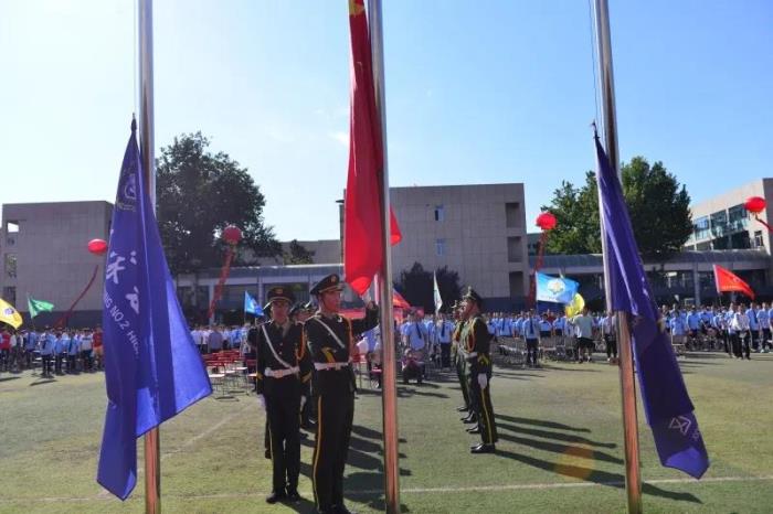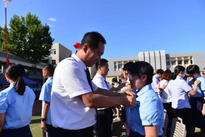 在庄严的国歌声中,典礼开始。 高一新生领诵、全校师生齐诵《二中赋》,感受二中文化。 学校领导和老师为新生佩戴校徽,崭新闪亮的校徽代表了他们的身份,为他们指引着人生的方向。 杨雅杰老师和高一学生献唱《老师,我想你》,表达了学生对老师的深情。