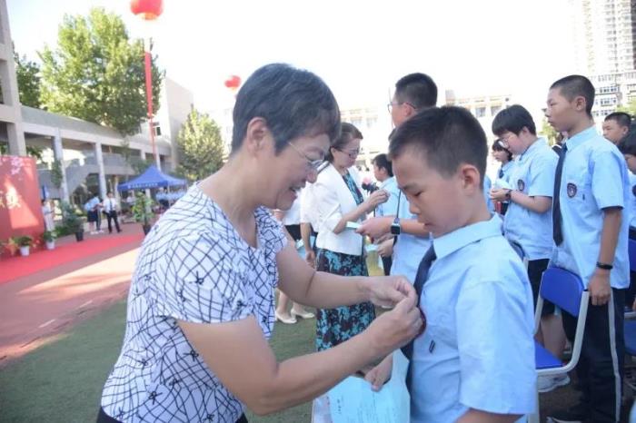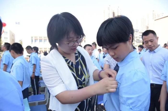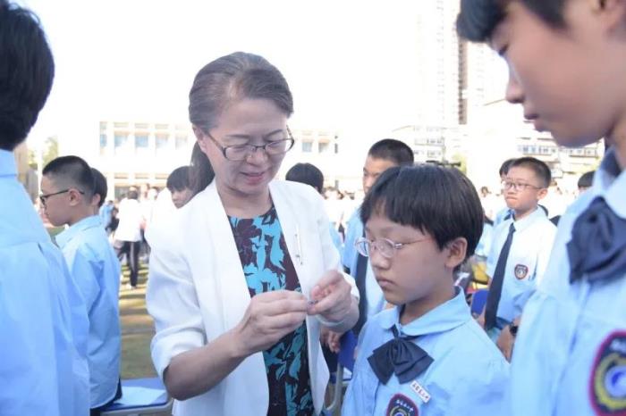 为学生佩戴校徽