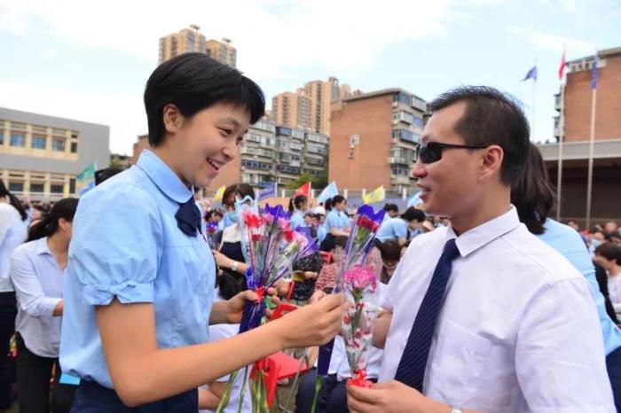随后,同学们为全体教工送上节日的祝福。同学们带着鲜花,送给最可亲可敬的老师。师生们互诉衷肠,把真诚的祝福送给对方。眼神中充满了爱,心底充满了温暖。会场上留下了一个个感动的瞬间。