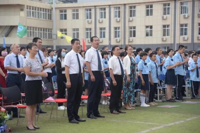 张永泽副校长讲话,他说,每一次遇见都是新的开始,新的丰盈。少年遇见了学校,遇见了老师,就有了教育,就有了成长。我们在二中西校区相遇,一定会遇见更好的自己,也一定会见证到更好的二中西! 在《歌唱祖国》的合唱中,典礼结束.