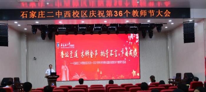 在第36个教师节来临之际,石家庄二中西校区隆重举行了主题为“杏坛至道,木铎金声;桃李不言,下自成蹊”的开学典礼暨教师节庆祝大会。孙福山校长、陈怀彦书记等学校领导、全体师生参加了活动。