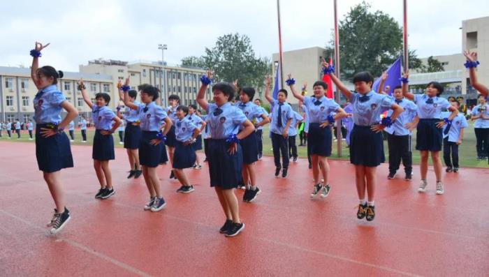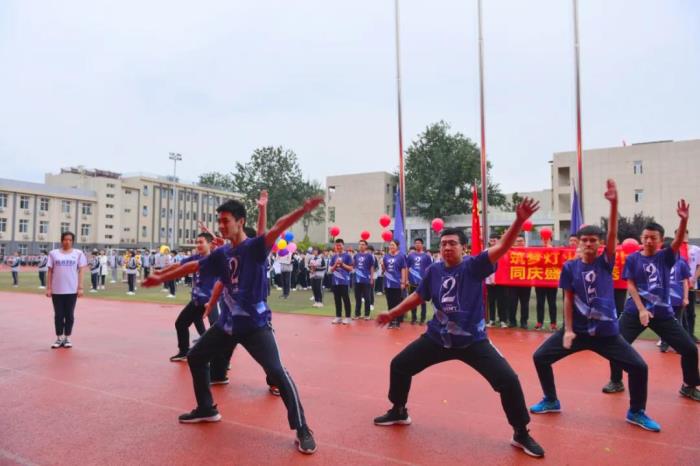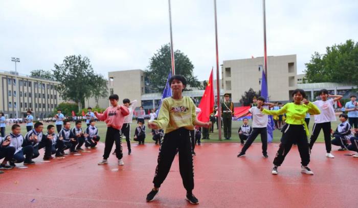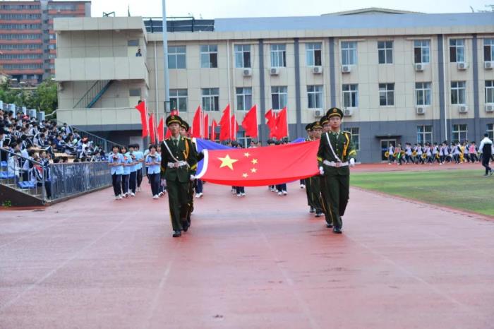 本届运动会恰逢中秋、国庆双节,无论是在项目设置上还是在团体操表演上都精心设置了许多爱国的元素。国旗校旗方阵、花束方阵、旗林方阵、各班班级方阵依次走过主席台。他们朝气蓬勃、意气风发;他们的口号热情洋溢、铿锵有力,充满自信。随风飘扬的红旗也正象征着我校学子的激情与朝气,代表着拼搏进取、勇往直前的弘毅精神。